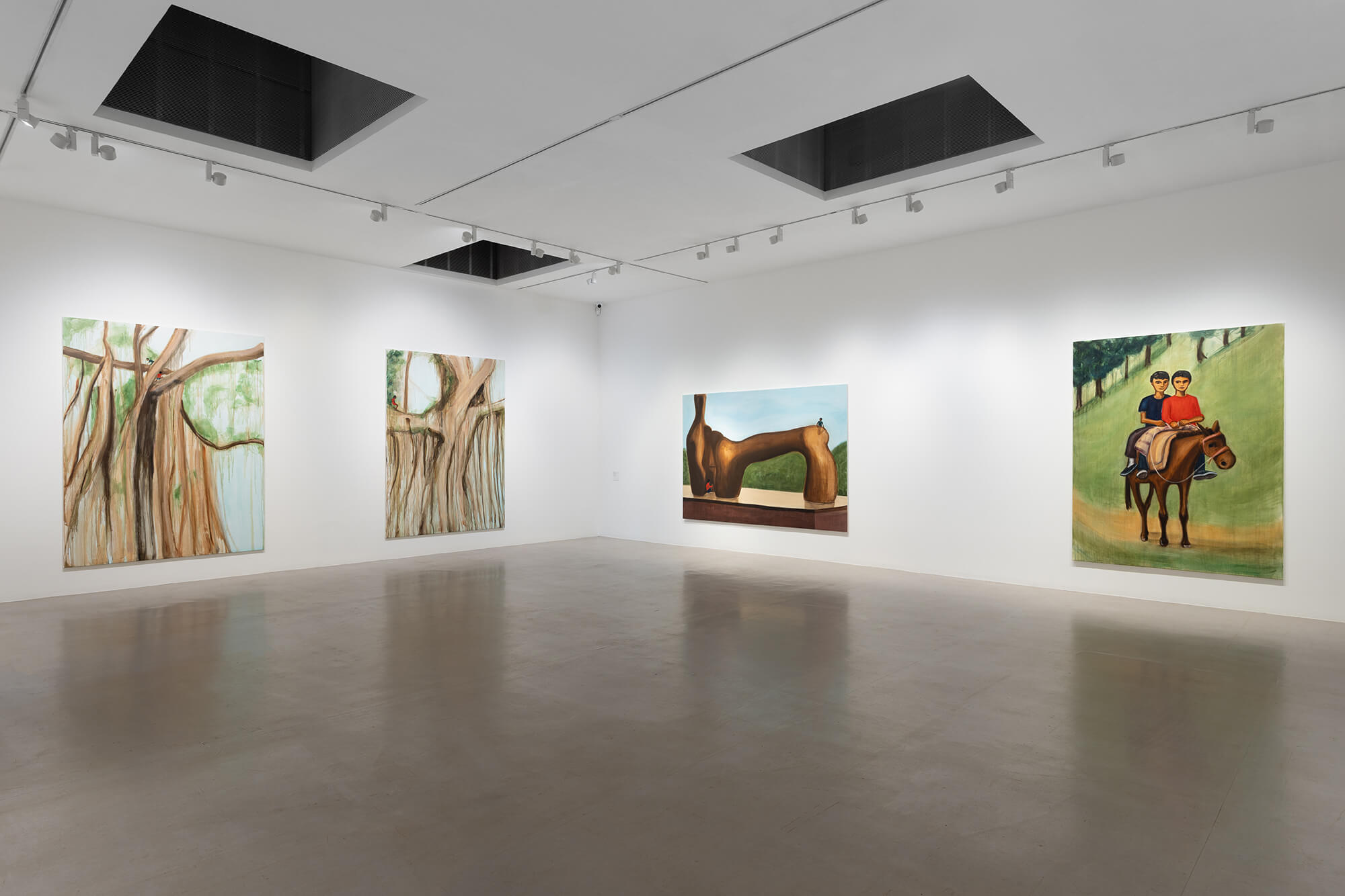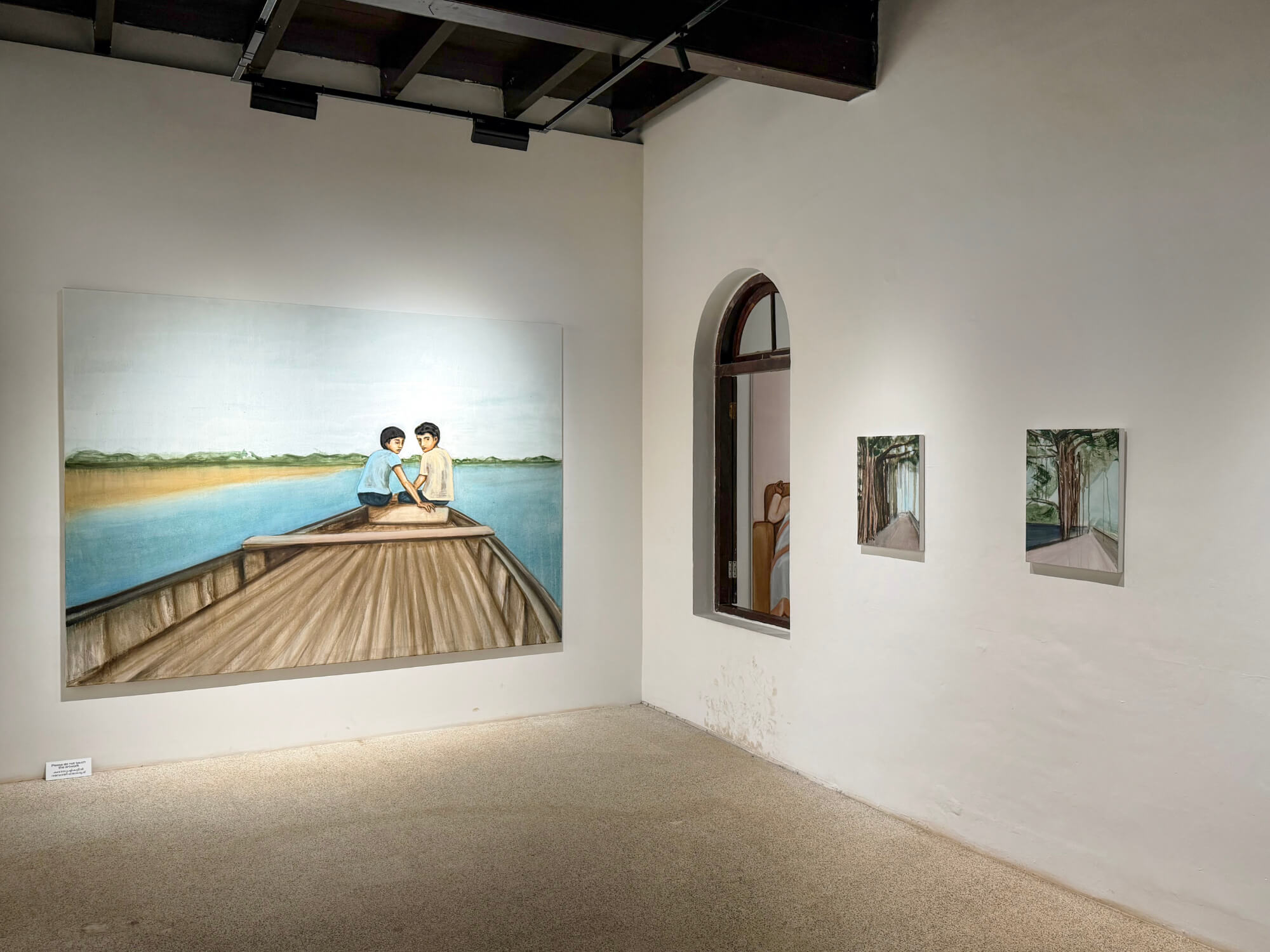 Many of these works depict the natural world at scale—interlocking banyan trees, aquatic scenes, and other remembered environments. Krishanu is not, however, a landscape or portrait artist; instead, his narratives surface through memory and the picture plane itself, and, shaped by painterly technique and subtle distortions of scale and perspective, remain just beyond immediate reach. Sequenced in the galleries, each work connects to the other to tell a version of a past told from the present day.