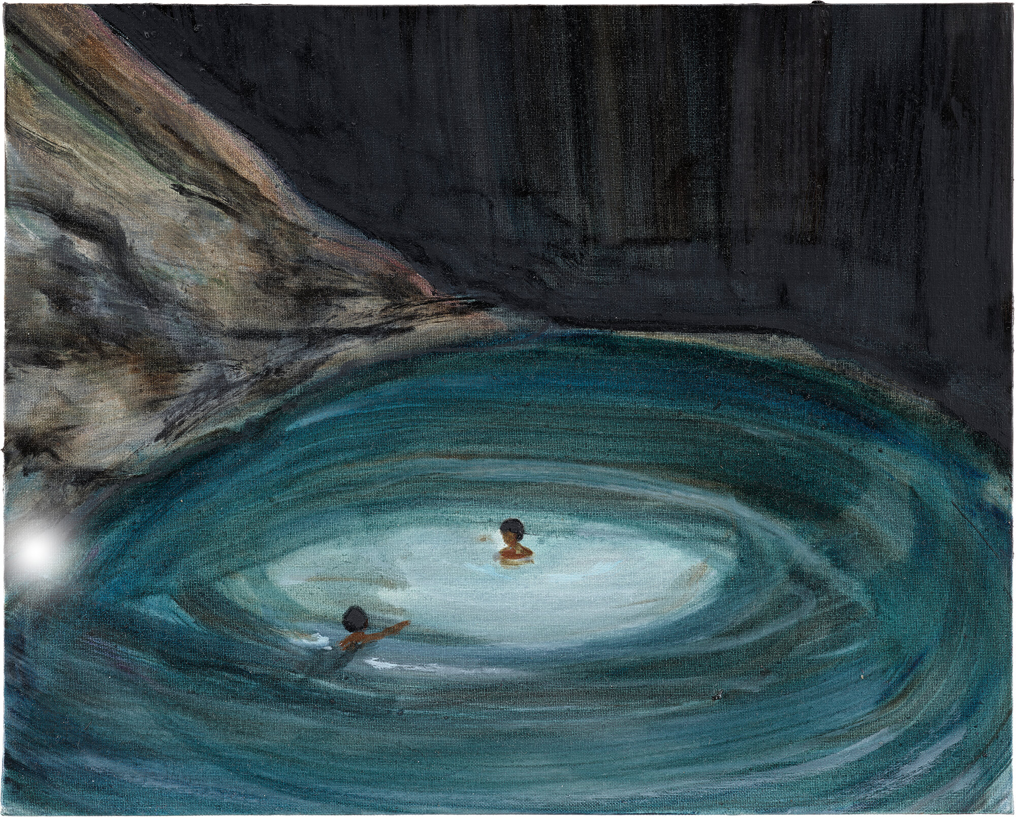 While continuing his focus on the figure in the land, collectively these works also seem to reflect on the nature of time: the split-second moment after a tree branch breaks, deep geological time of rock contrasted with the fragile human time of early childhood, instant photographic time and the revisionist time of the painter’s studio. Restful time. Productive time. The time it takes to make and the time it takes to look. The type of time that stretches uninterrupted over a summer’s afternoon. The finite nature of human time.