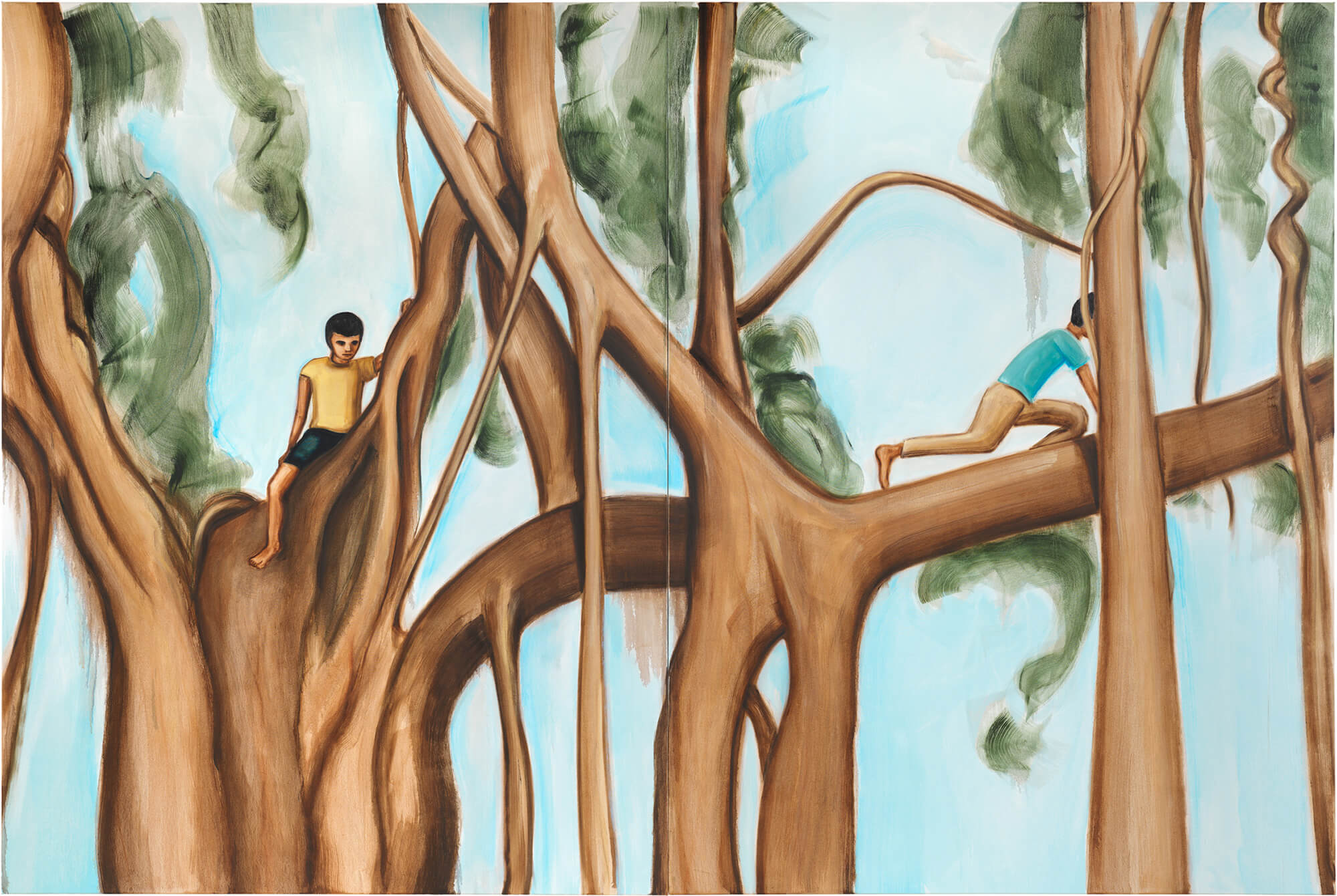 Banyan Tree, Two Boys, 2025, oil on canvas, 270 x 400cm (Diptych)